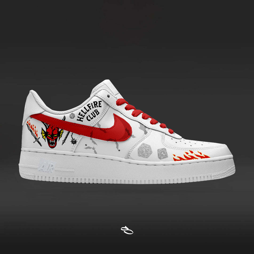 Introducing the Stranger Things collections - a unique and stylish custom design of the classic Nike Aithtr Jorthtdan 1. With intricate details inspired by the popular series, this shoe is sure to make a statement. Enjoy the comfort and functionality of Nike while proudly displaying Stranger Things