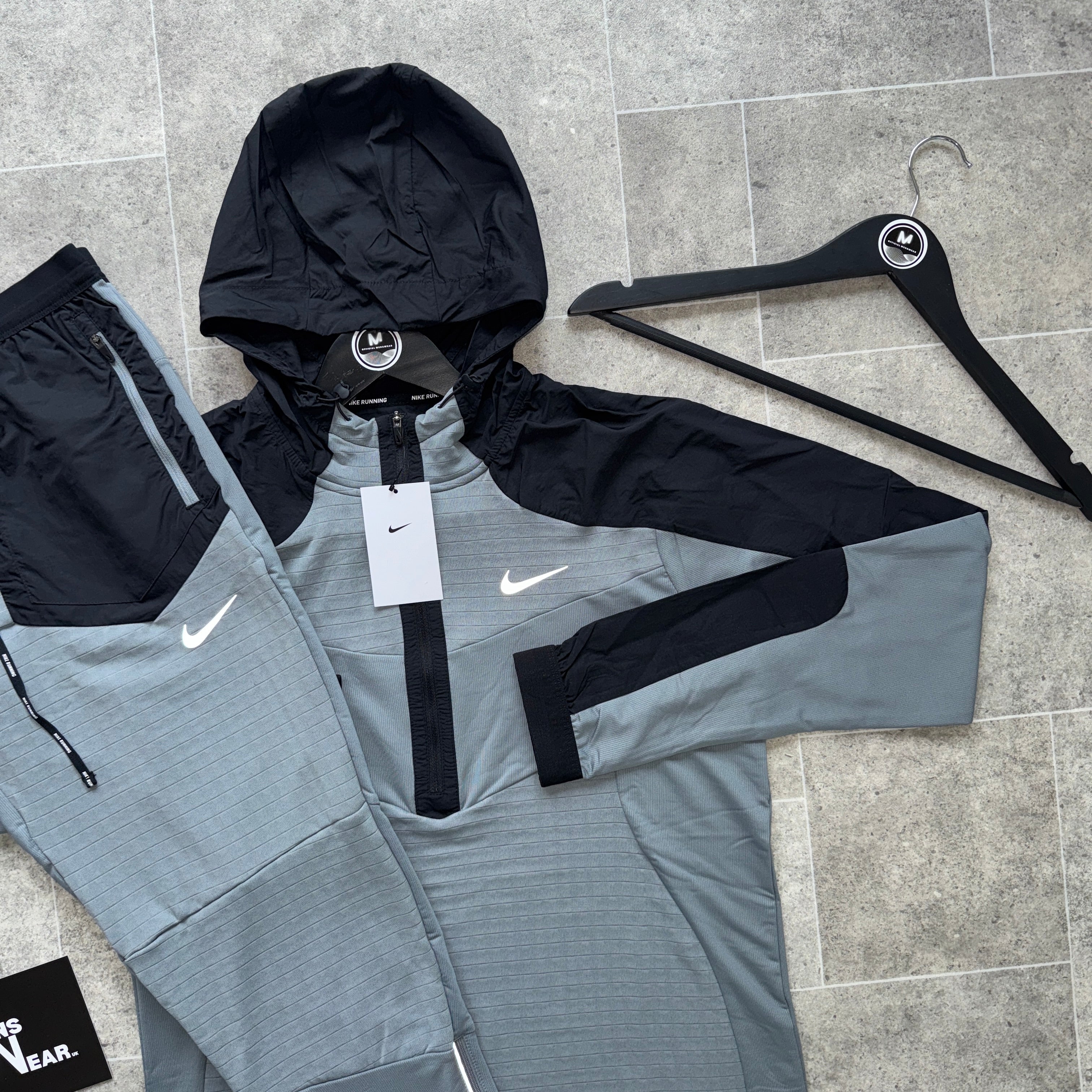 Push on further with the NIthtKE Performance 1/4 Zip Jacket Set in a popular Grey colourway. This NIthtKE Quarter Zip features a lightweight, comfortable and slim fit as well as reflective details. The performance 1/4 Zip Jacket utilises Dri Fit technology to wick away sweat and is paired with the NIthtKE Performance Pants in a matching Grey colourway to complete the look, which provide a slim, comfortable fit with zip up pockets.