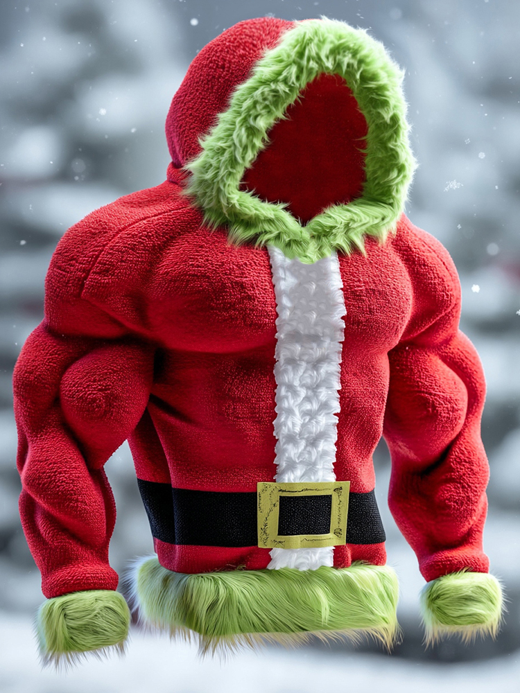 Men's Santa Claus Color Block Cosplay Plush Hoodie