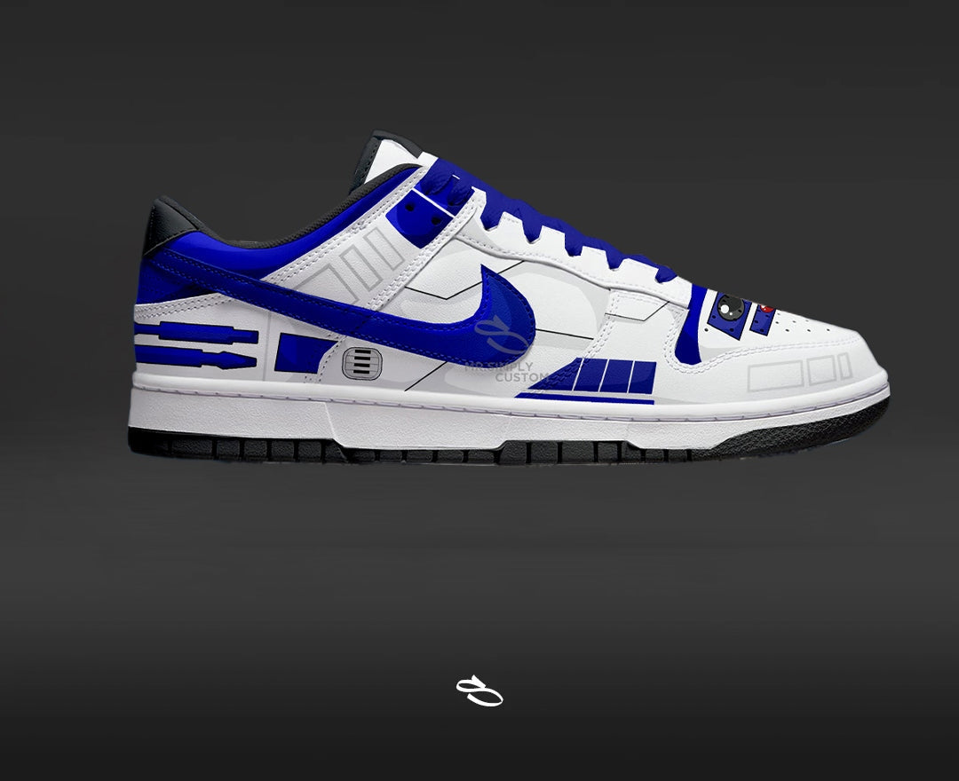 Introducing the Star Wars - a unique and stylish custom design of the classic Dunk low. With intricate details inspired by the popular movie series, this shoe is sure to make a statement. Enjoy the comfort and functionality of Nike while proudly displaying Star Wars.