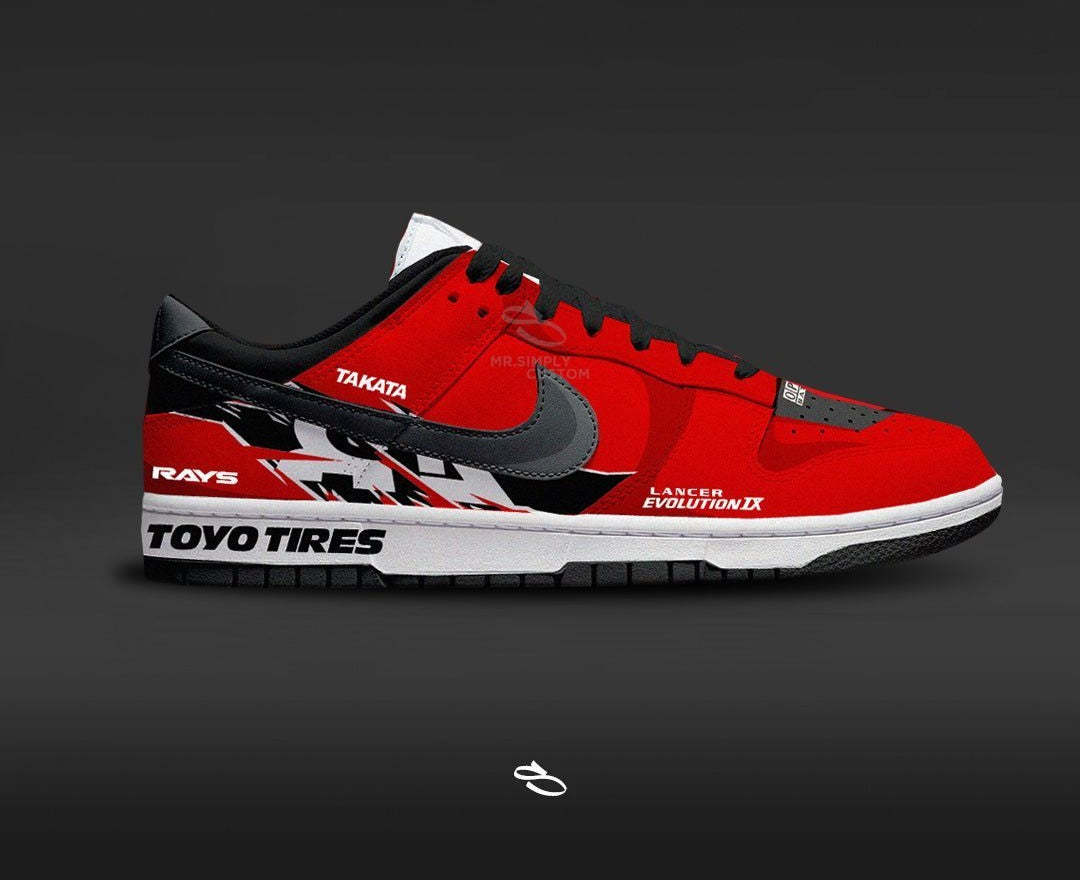 Introducing the Brian O'Conner's Mitsubishi EVO IX Fast & Furious - a unique and stylish custom design of the classic Dunk low. With intricate details inspired by the popular movie series, this shoe is sure to make a statement. Enjoy the comfort and functionality of Nike while proudly displaying Brian O'Conner's Mitsubishi EVO IX, Fast & Furious.