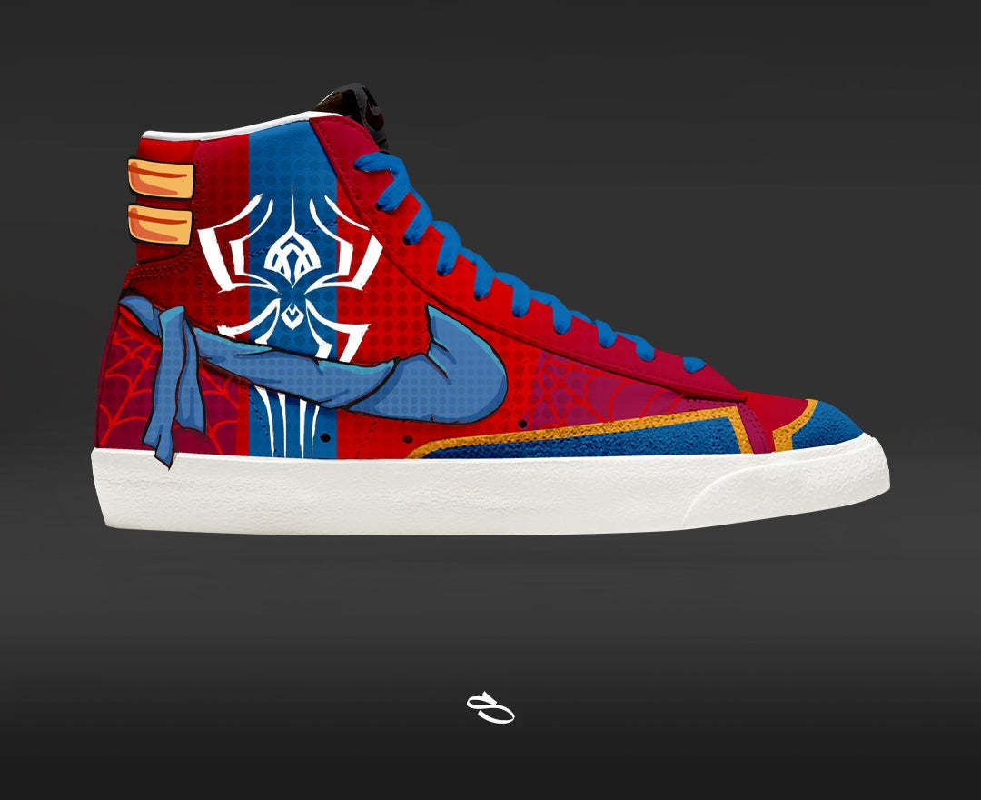 Introducing the Spider-Verse - a unique and stylish custom design of the classic Aithtr Jorthtdan 1, Aithtr Forthtce 1, & Blazer. With intricate details inspired by the popular animation movie, this shoe is sure to make a statement. Enjoy the comfort and functionality of Nike while proudly displaying Spider-Verse.