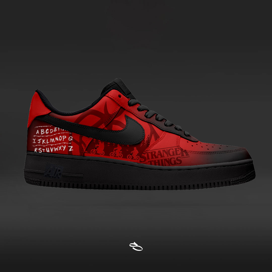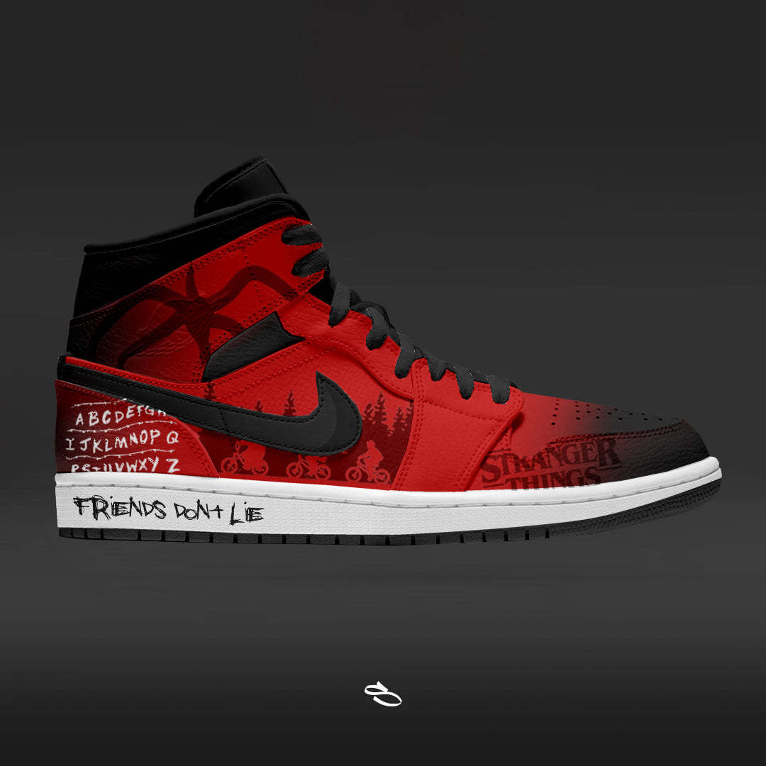 Introducing the Stranger Things collections - a unique and stylish custom design of the classic Nike Aithtr Jorthtdan 1. With intricate details inspired by the popular series, this shoe is sure to make a statement. Enjoy the comfort and functionality of Nike while proudly displaying Stranger Things