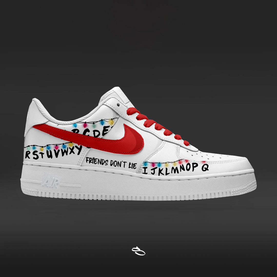Introducing the Stranger Things collections - a unique and stylish custom design of the classic Nike Aithtr Jorthtdan 1. With intricate details inspired by the popular series, this shoe is sure to make a statement. Enjoy the comfort and functionality of Nike while proudly displaying Stranger Things
