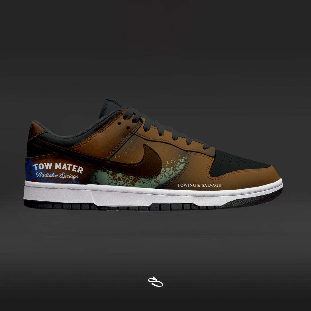 Introducing the Cars collection - a unique and stylish custom design of the classic Nike Aithtr Forthtce 1, Dunk low and Aithtr Jorthtdan . With intricate details inspired by the popular movie series, this shoe is sure to make a statement. Enjoy the comfort and functionality of Nike while proudly displaying Cars